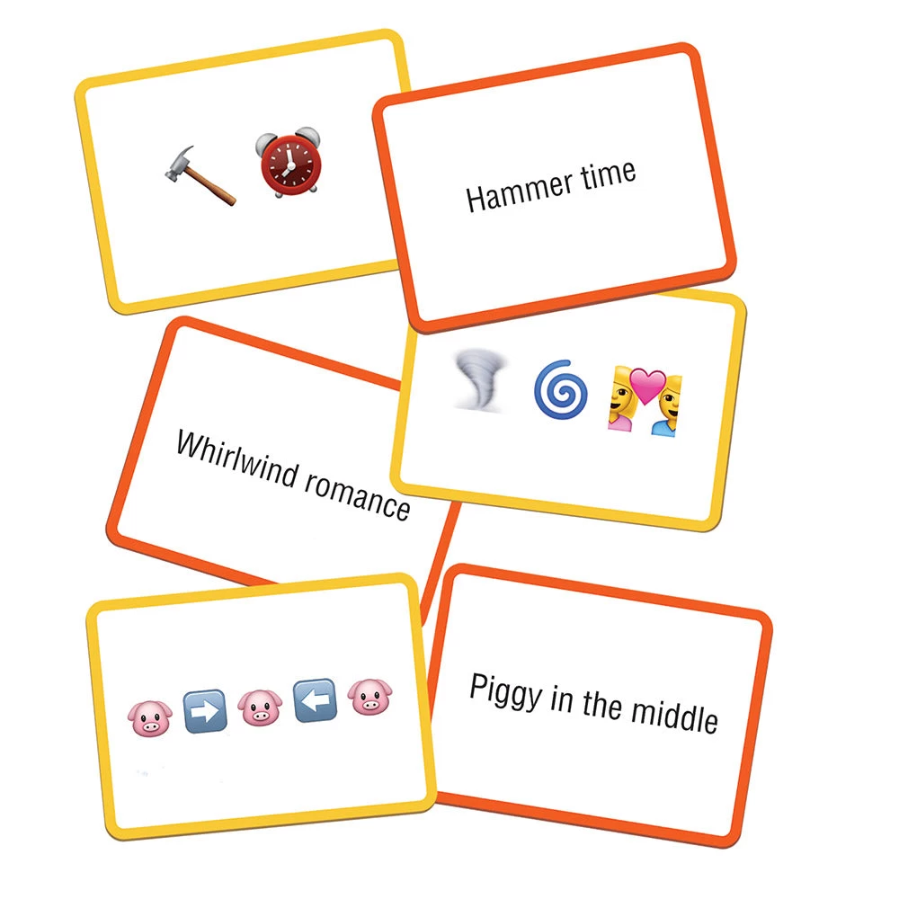 This game is the perfect challenge. There’s 56 flash cards, each with a different couple of emojis that represent a well known phrase. Guess the phrase to win points in the game and with the younger crowd!