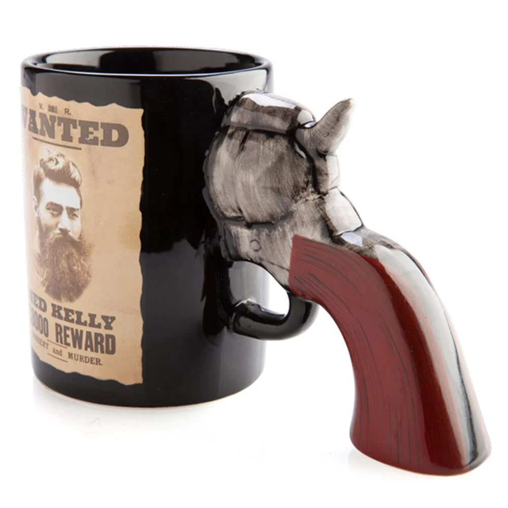 Our Ned Kelly Gun Handle Mug will make you feel like a dangerously cool bushranger gangster every morning. Fill it with your favourite brew, grab the sculpted gun handle, and sip. No one will want to mess with you. Everyone will want to be you.