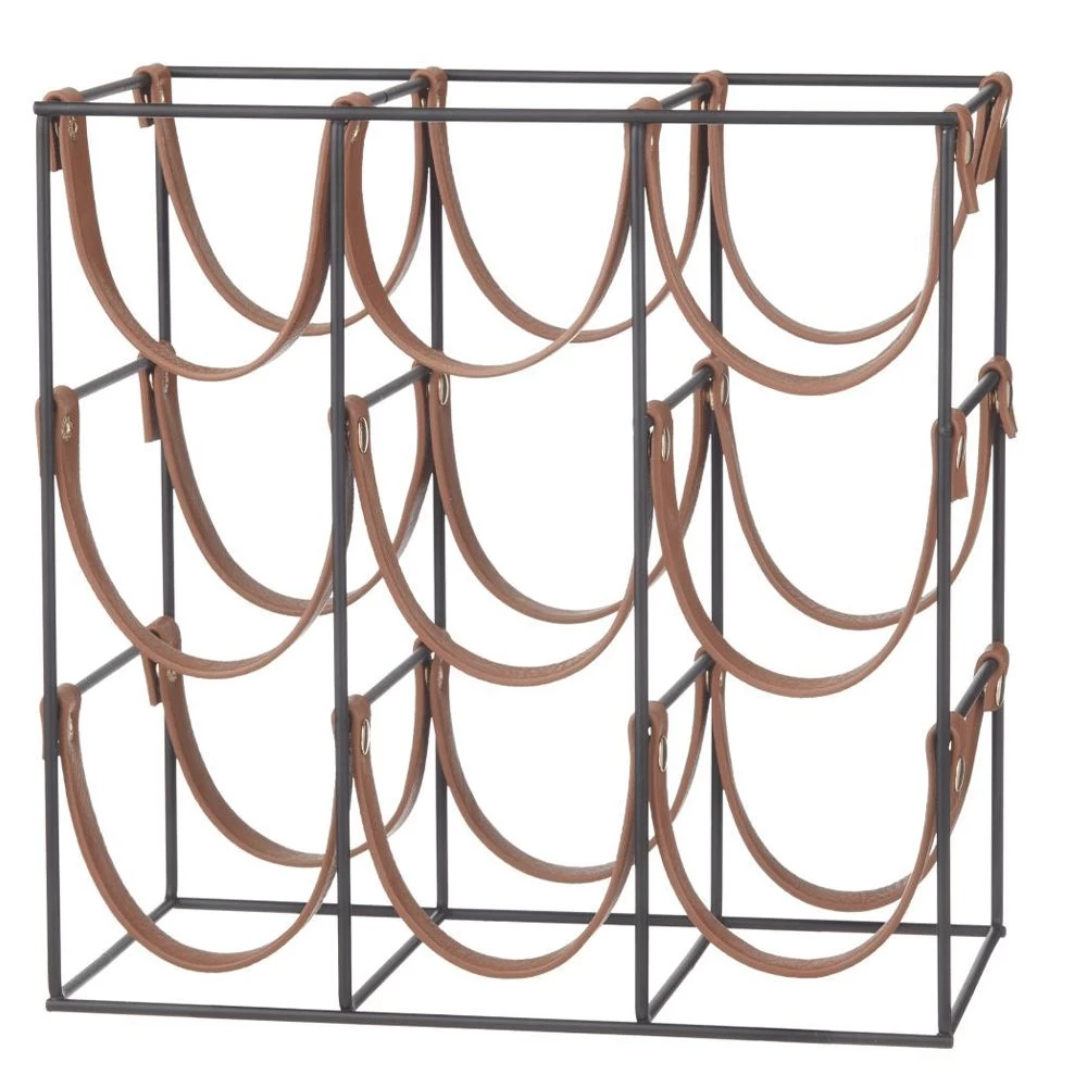 ORWELL 9 BOTTLE IRON & LEATHER WINE RACK