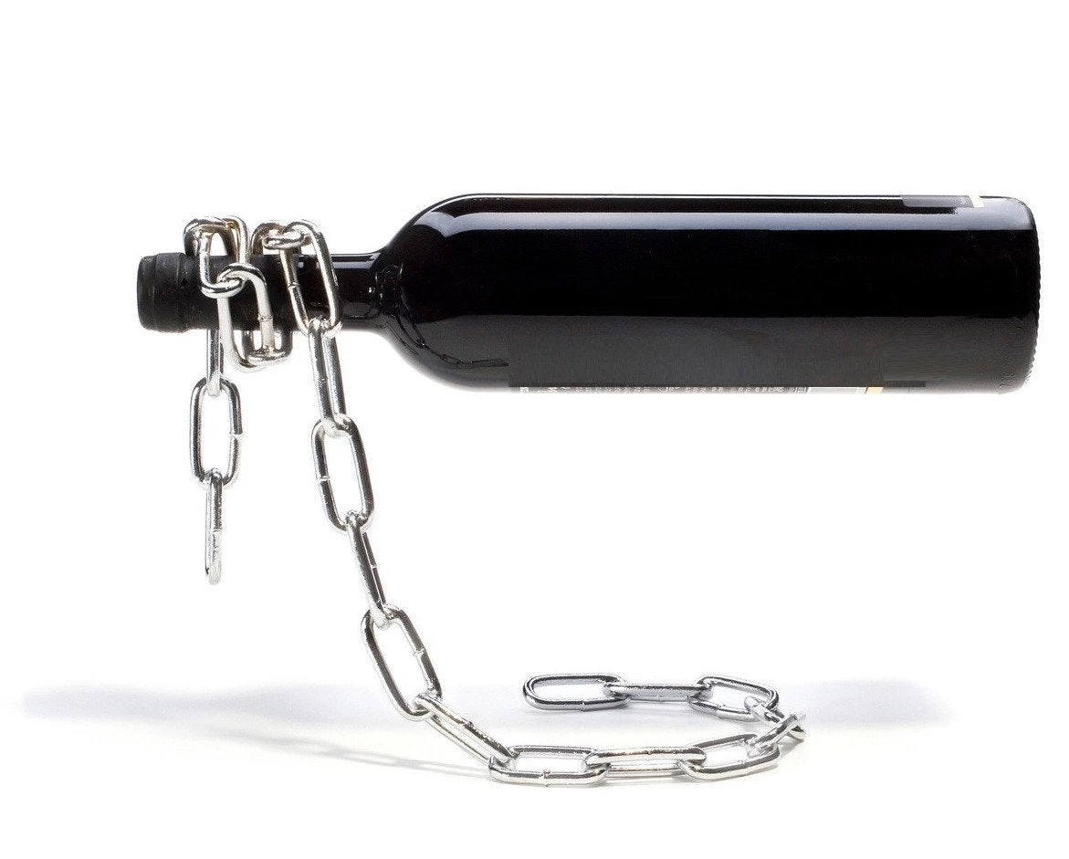- The holder is a simple chunky chain (or so it seems) into which you insert the neck of a standard bottle of wine