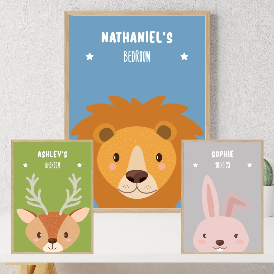 Say goodbye to boring bare walls with this Personalised Animals Kids Poster!