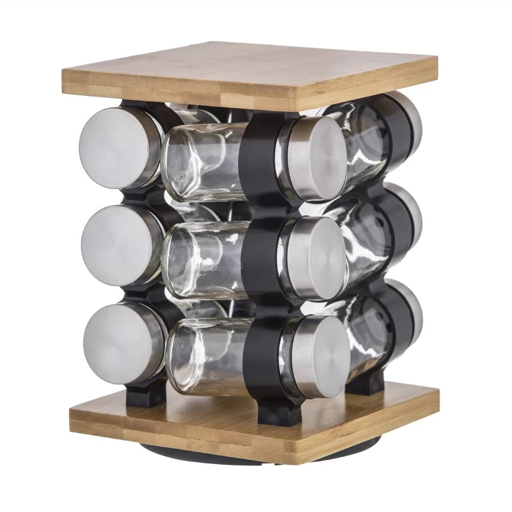 - Inclusions: Bamboo Rack, 12 x Glass Jars