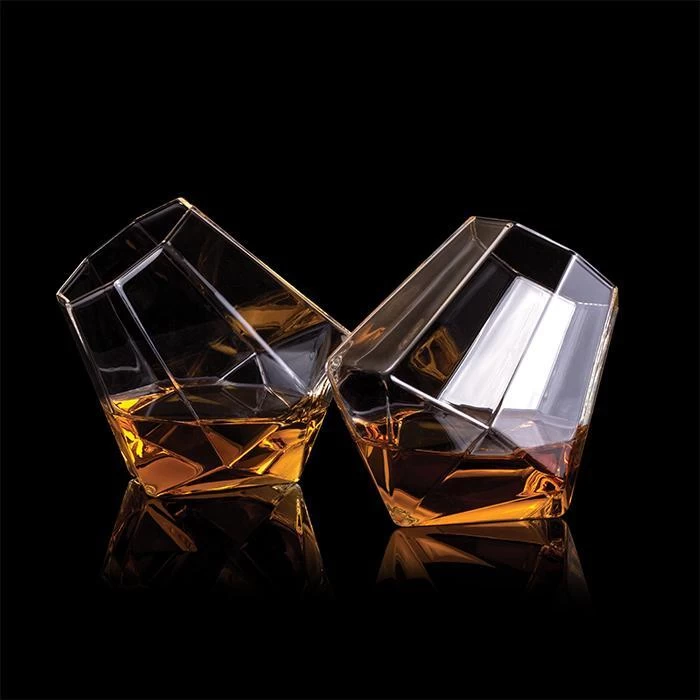 Our set of 2 Diamond Whiskey Tumblers will add a touch of elegance and style to your next soiree. Delicate-looking yet durable, lightweight and functional, their diamond shape fits comfortably in your hand and catches the light beautifully when filled with your preferred spirit. Their unique design means they rest at an angle, allowing you to rotate your beverage for maximum aeration and enjoyment.