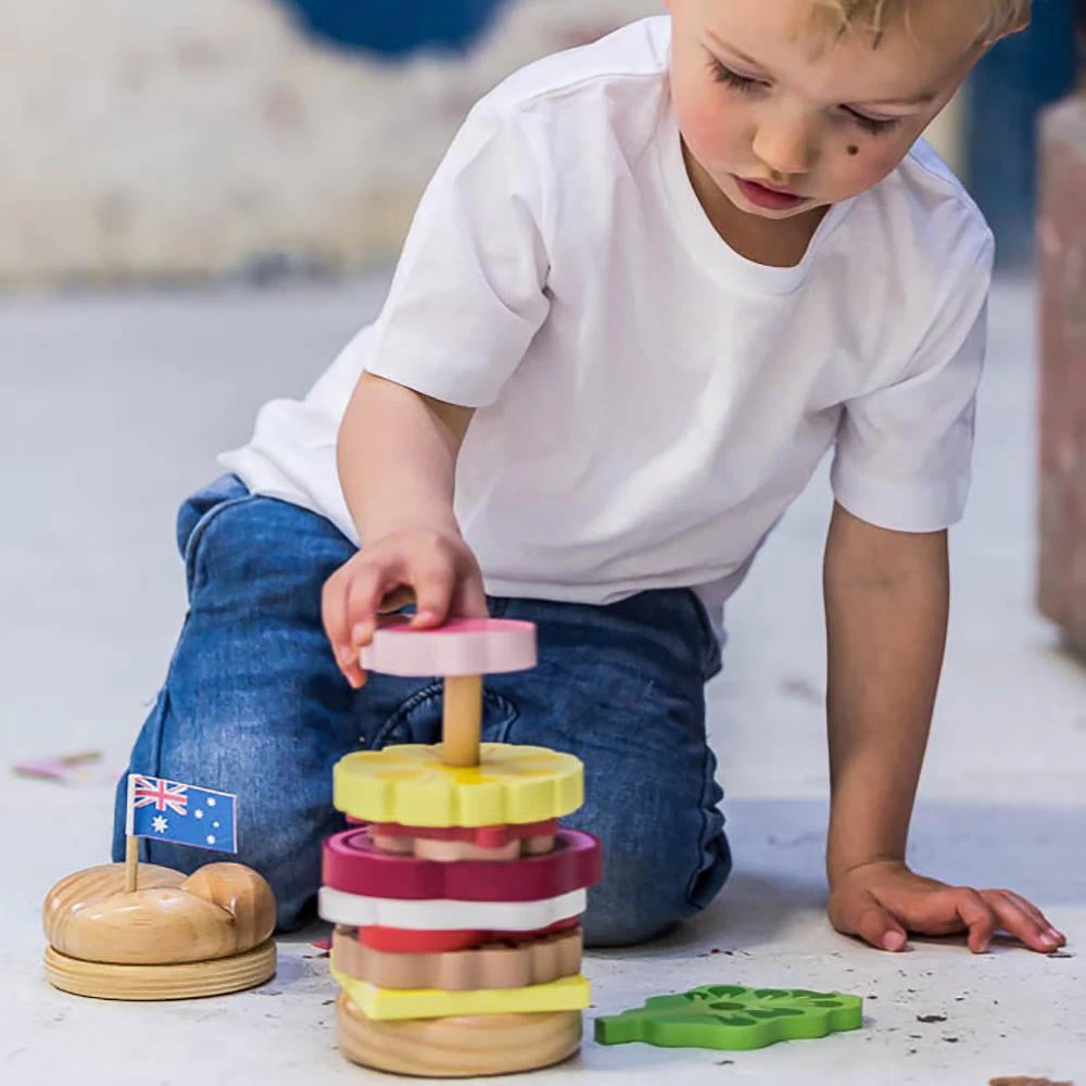 STACKABLE WOODEN AUSSIE BURGER WITH THE LOT TOY