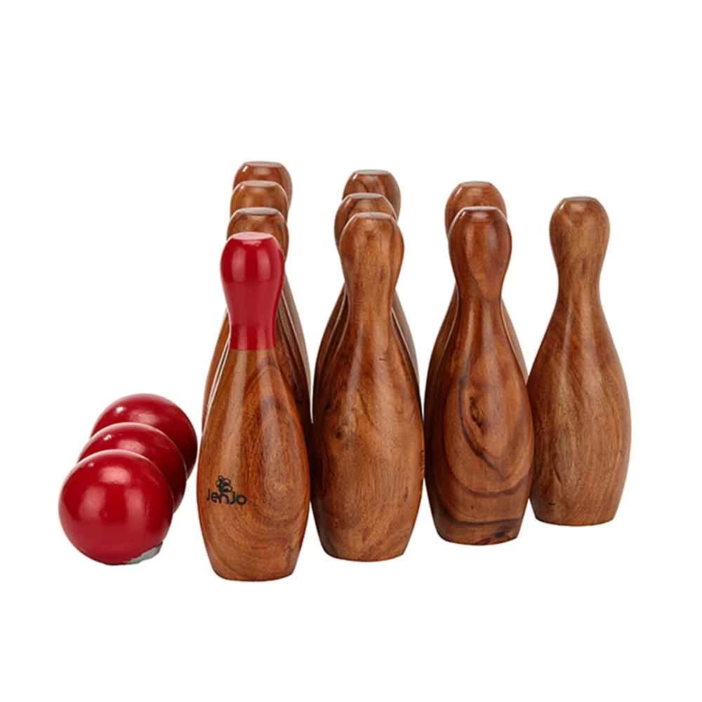 - Wooden skittles with mini bowling balls
